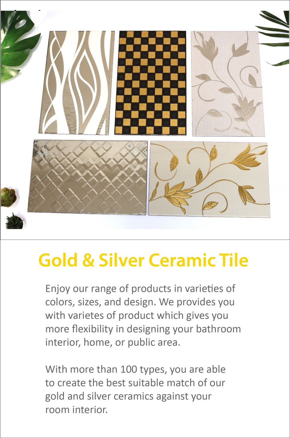 Gold & Silver Ceramic Decoration are Premium Quality Product of PT Rosy Ceramindo which is designed especially for you in order to create luxurious yet elegant and stylist desain surrounding you. This product also guaranteed with good quality of endurance, because the Gold and Silver decoration will stay strong even it its cleaned with wall cleaner chemical type or direct exposure with sunlight in period of time.